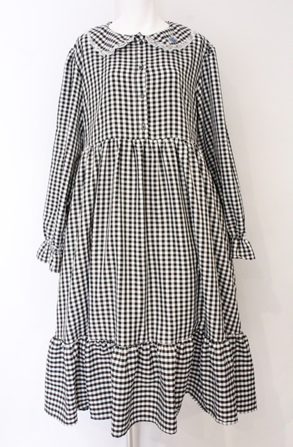 FLC / 星名桜子/ギンガムチェックワンピース 4L クロ×シロ O-26-04-27-1064-LO-OP-IG-OS