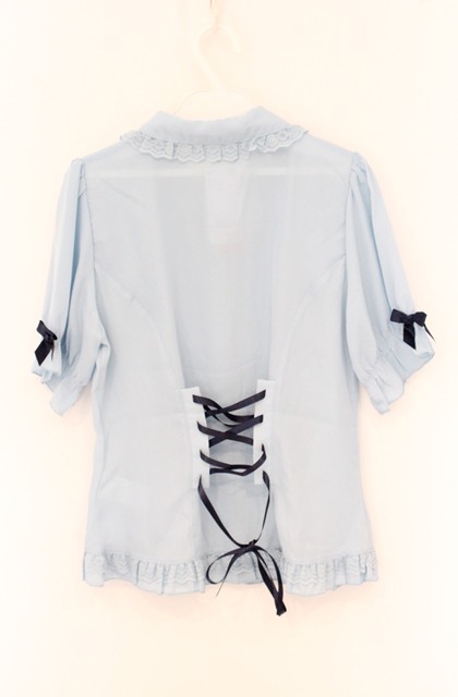 axes femme POETIQUE / バックレースアップロングブラウス サックス O-26-04-27-1037-AX-BL-IG-OS