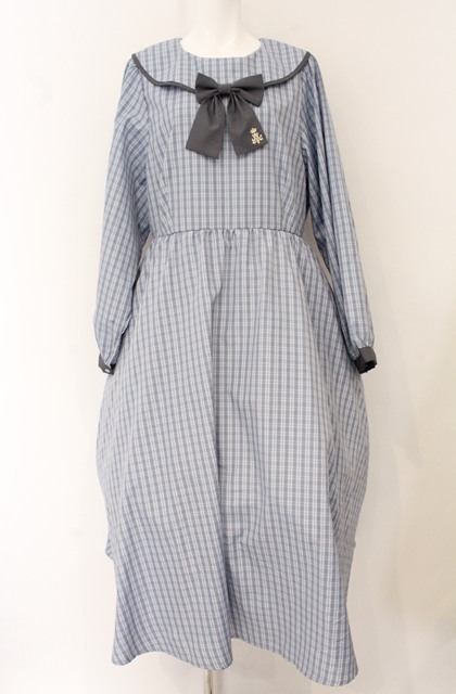 m petit by misako / リボンチェックワンピース 3L ブルー O-26-04-27-1040-LO-OP-IG-OS
