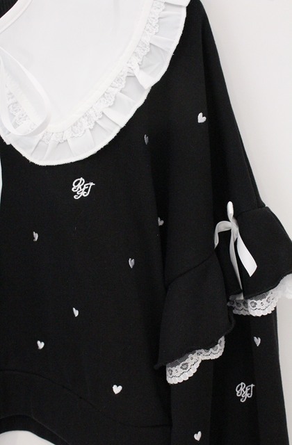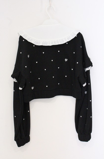 Rojita / 2WAYカラーハート刺繍スウエット F クロ×シロ O-26-04-27-1020-LO-TO-OW-OS