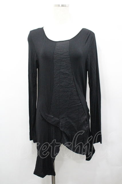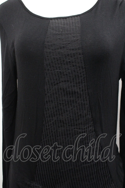 KUNIKUNI / ストライプジャガード切替カットソー 黒 I-26-04-27-010-HN-TO-TE-ZI