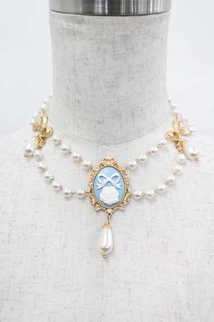 Chalmiere / カメオ風パールチョーカー 白Xサックス I-26-04-27-125-0-AC-SA-ZI