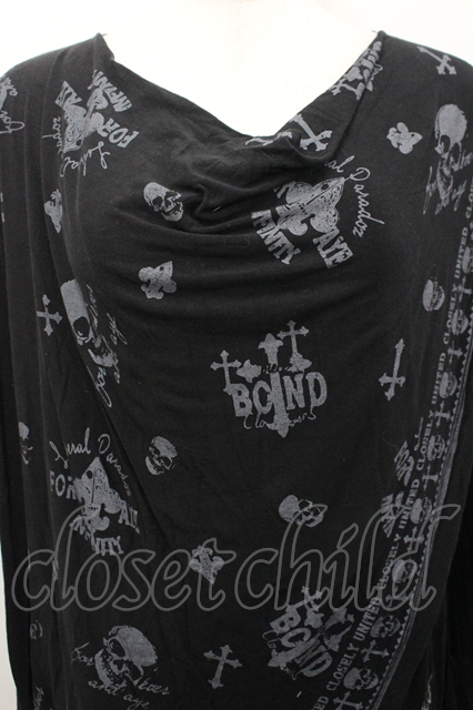 GHOST of HARLEM / スカルプリントドレープカットソー 黒 I-26-04-27-014-GL-TS-TE-ZI