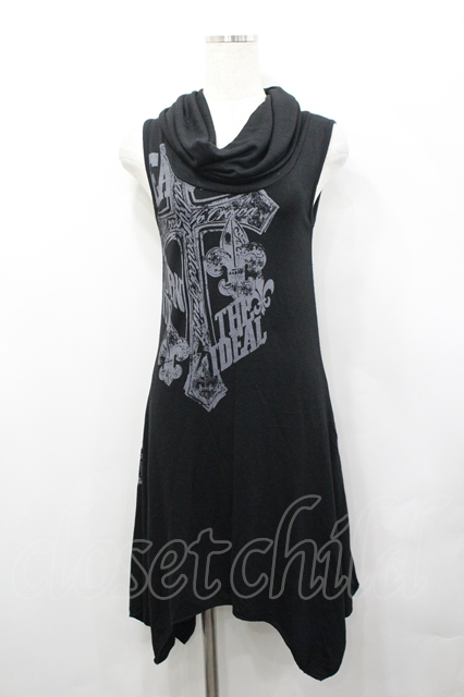 GHOST of HARLEM / クロスプリントノースリーブワンピース 黒 I-26-04-27-056-GL-OP-TE-ZI