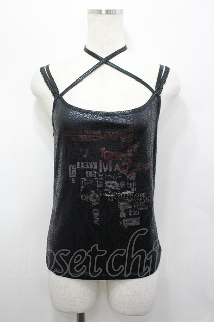 H jelly / 鱗風プリントキャミソール 黒 I-26-04-27-019-HN-TO-TE-ZI