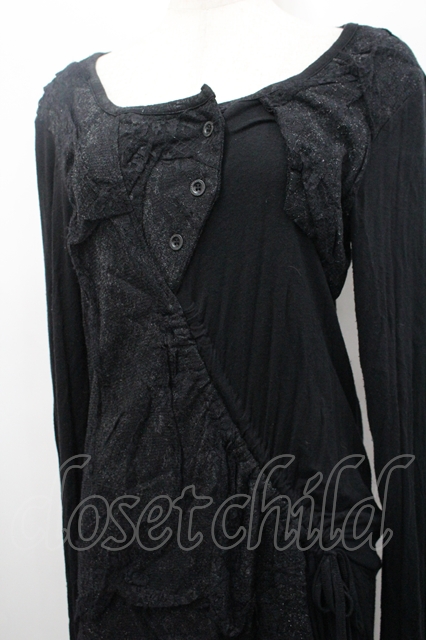 NAOTO SEVEN / レース切替ロングカットソー 黒 I-26-04-27-027-HN-TO-TE-ZI