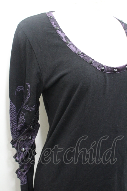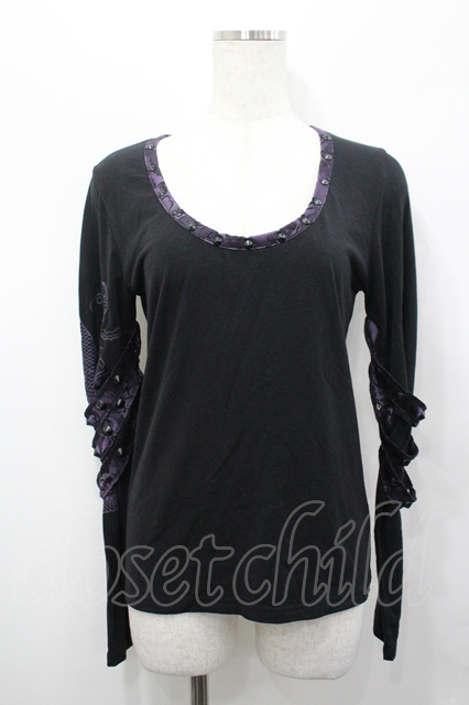 Qutie Frash / スタッズドルマンカットソー 黒×紫 I-26-04-27-032-QU-TO-TE-ZI