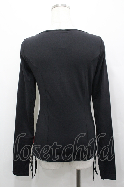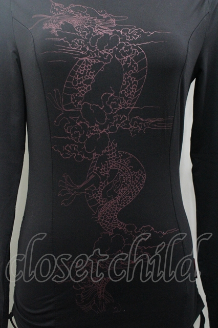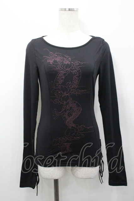 Ozz Croce / サイドドロストドラゴンプリントトップス 黒×赤 I-26-04-27-039-OO-TO-TE-ZI