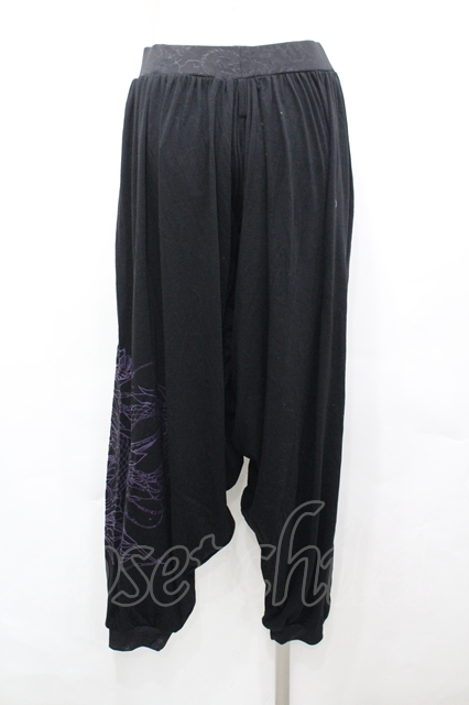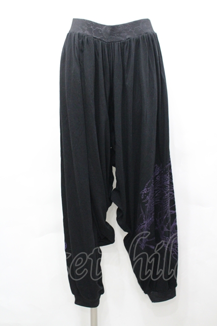 Qutie Frash / ドラゴンプリントサルエルパンツ 黒×パープル I-26-04-27-073-QU-PA-TE-ZI