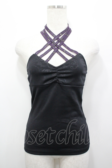 Qutie Frash / ドラゴン柄クロスキャミソール 黒×紫 I-26-04-27-031-QU-TO-TE-ZI