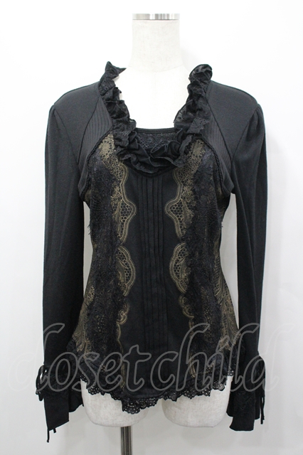 Rozen Kavalier / レースリブ切替トップス 黒 I-26-04-27-033-OO-TO-TE-ZI