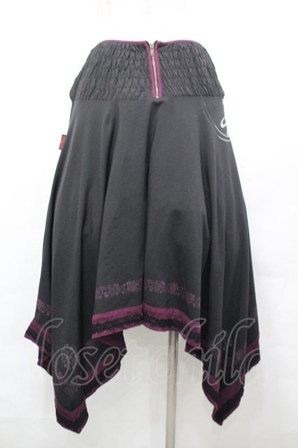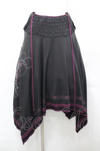 Ozz oneste / 花刺繍プリントイレヘム2Wayスカート 黒×紫 I-26-04-27-071-OO-SK-TE-ZI