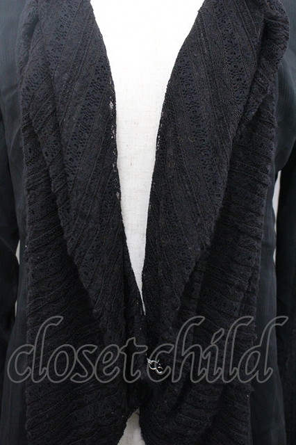 NAOTO SEVEN / 襟付きレースシアーカーディガン 黒 I-26-04-27-026-HN-TO-TE-ZI