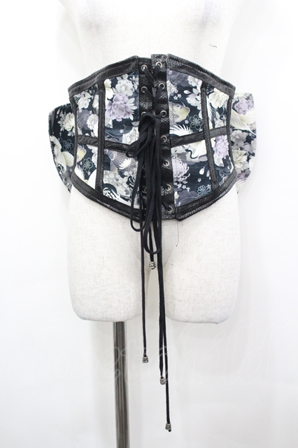 Qutie Frash / 鶴和柄リボン帯コルセット 黒X白 I-26-04-27-076-QU-TO-SA-ZI