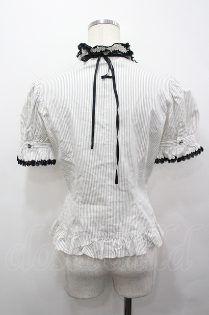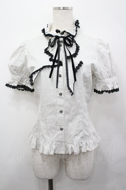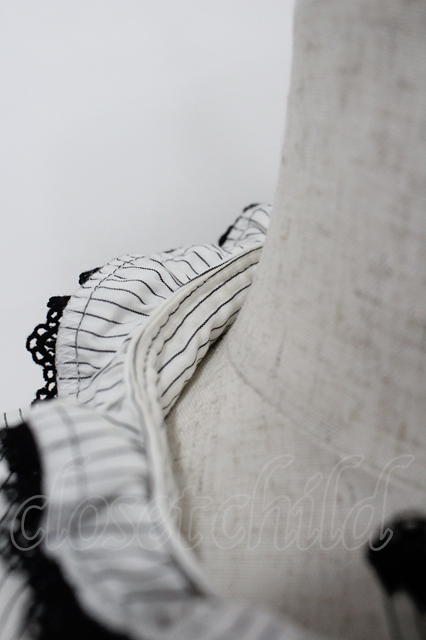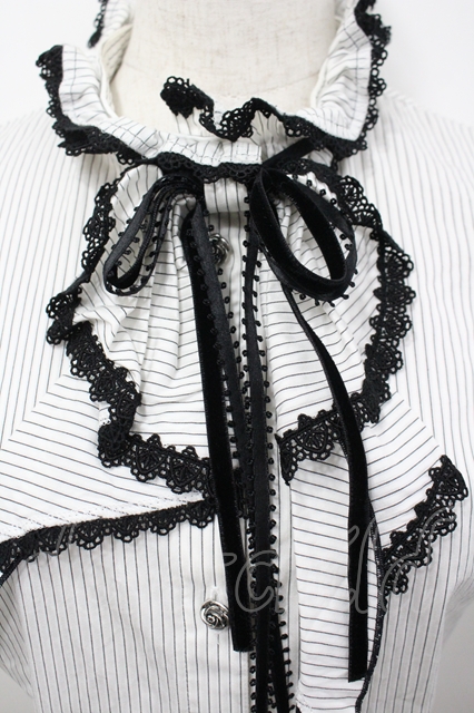 Moi-meme-Moitie / ストライプラッフルタイ付ブラウス 白X黒 I-26-04-27-006-MO-BL-SA-ZI