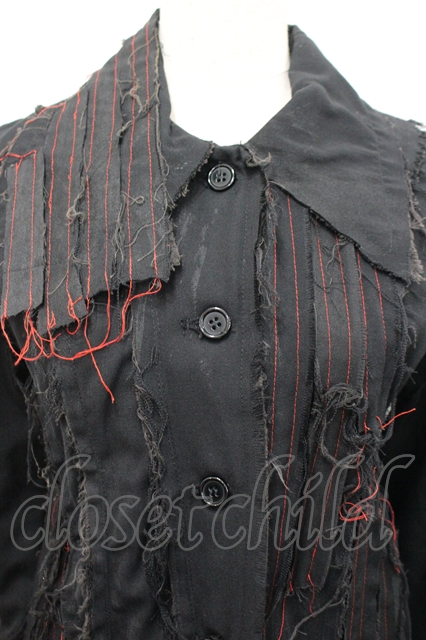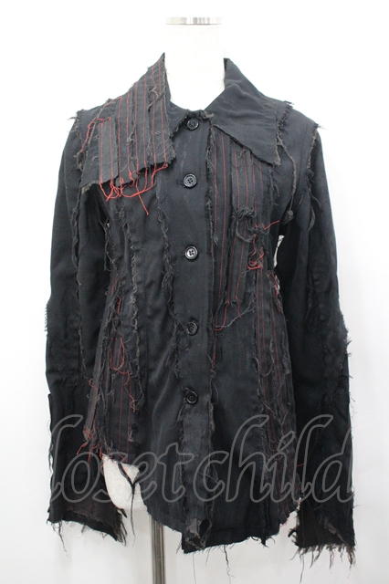h.NAOTO / ダメージ加工シャツ 黒 I-26-04-27-018-HN-TS-TE-ZI