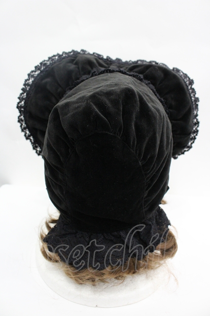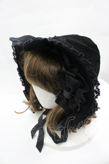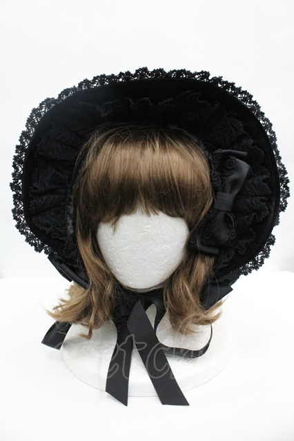 BABY,THE STARS SHINE BRIGHT / 別珍トーションレースボンネット 黒 I-26-04-27-091-BA-AC-AS-ZI