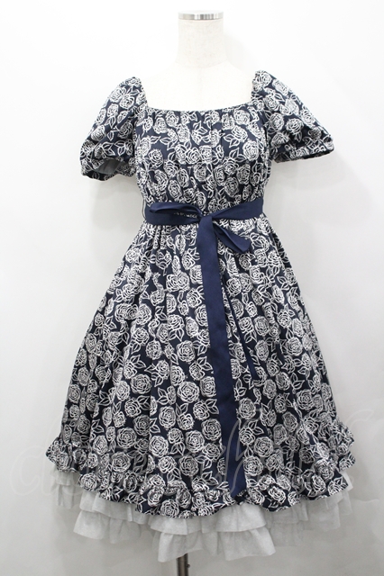 Moi-meme-Moitie / ローズガーデンワンピース 黒X白 I-26-04-27-051-MO-OP-SA-ZI