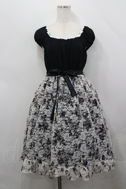 Moi-meme-Moitie / ローズフォレストワンピース 黒X白 I-26-04-27-050-MO-OP-SA-ZI