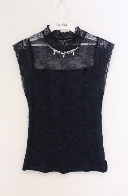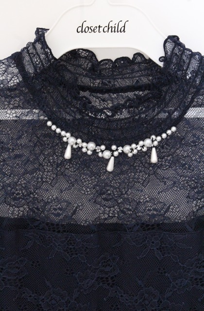 axes femme / 総レースプチスタンドプルオーバー M ネエビー O-26-04-28-006-AX-TO-IG-OS