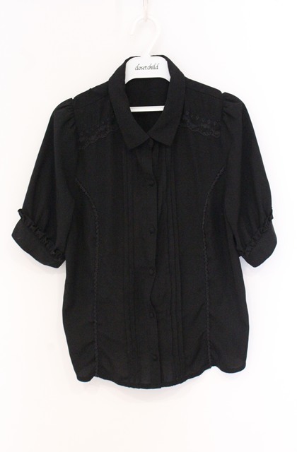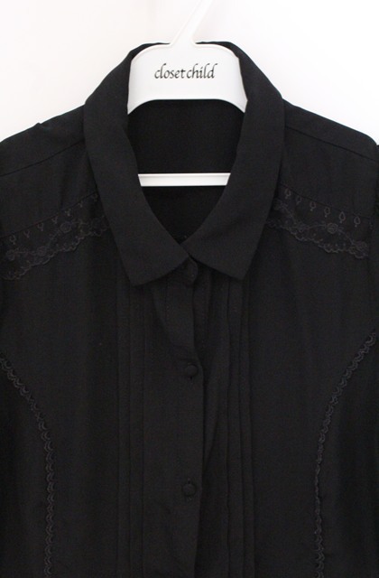 axes femme / 刺繍ネクタイ付ブラウス クロ O-26-04-28-012-AX-BL-IG-OS