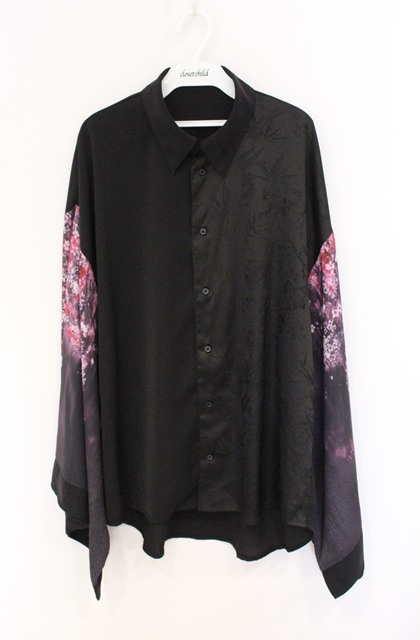 rezen / 枝垂桜和袖シャツ M クロ×パープル系 O-26-04-28-008-LO-BL-IG-OS