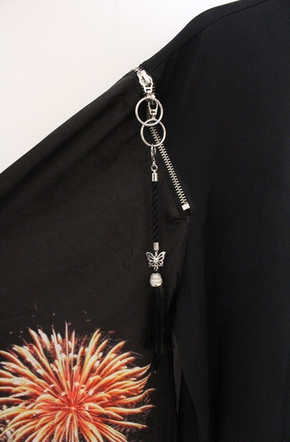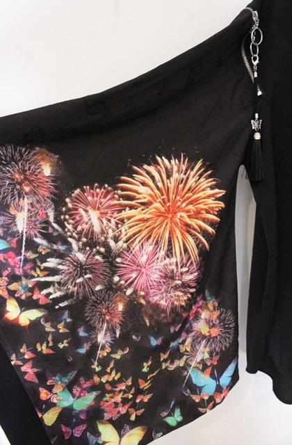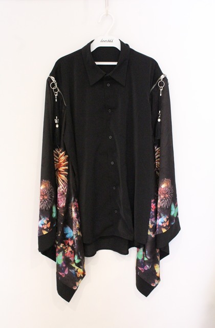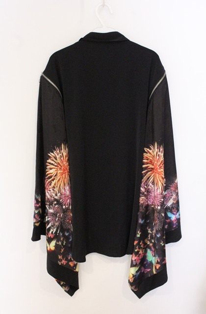 rezen / 蝶×花火プリント和袖シャツ M ブラック O-26-04-28-013-LO-BL-IG-OS