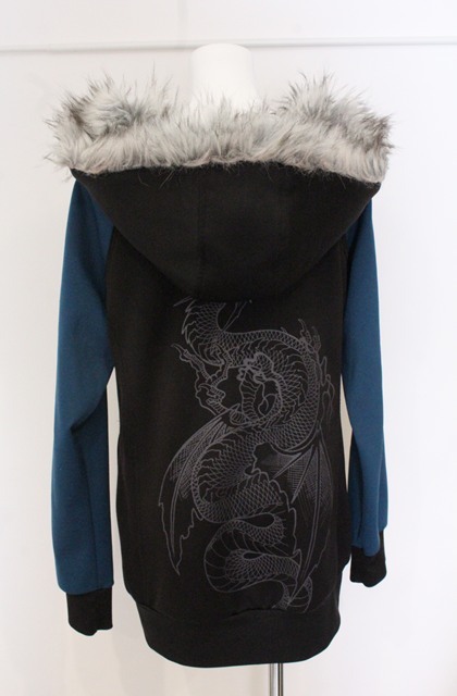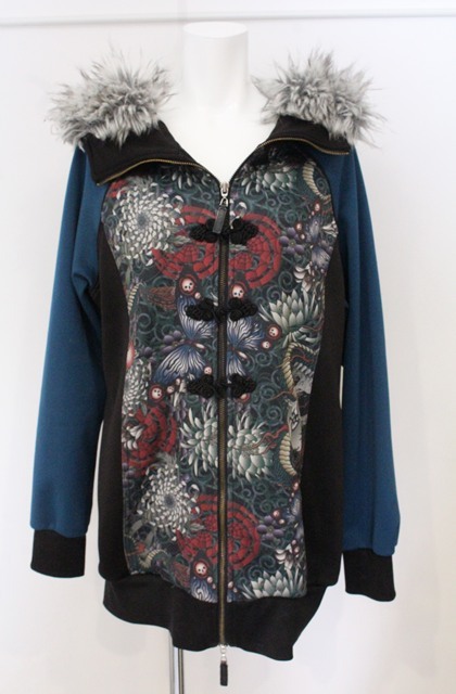 Qutie Frash / 和柄切り替えファーつきブルゾン ブラック×グリーン O-26-04-28-001-QU-JA-OW-OS