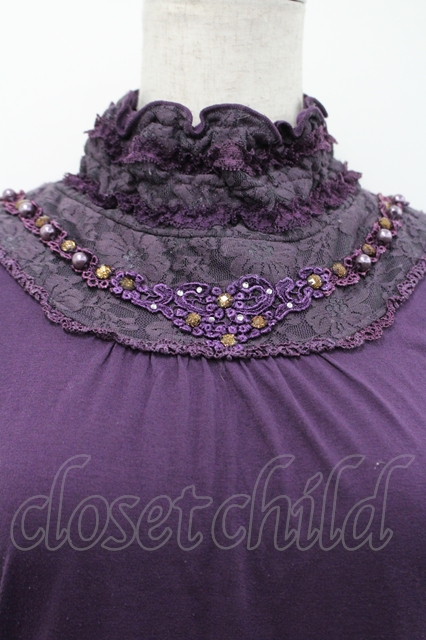 axes femme / 首元レース切替ビジュープルオーバー M パープル I-26-04-29-010-AX-TO-TE-ZI