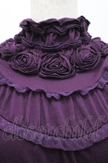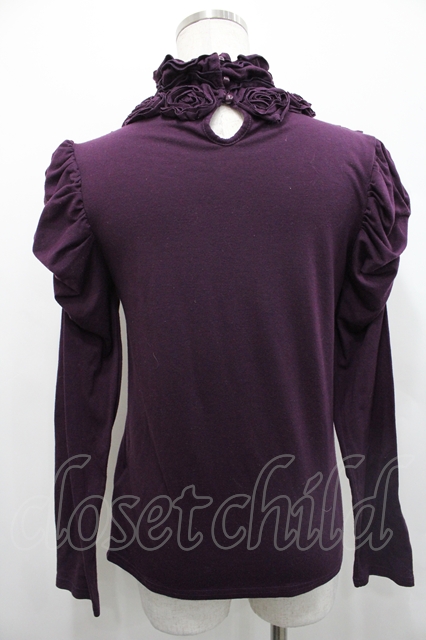 axes femme / 薔薇モチーフハイネックカットソー M パープル I-26-04-29-012-AX-TO-TE-ZI