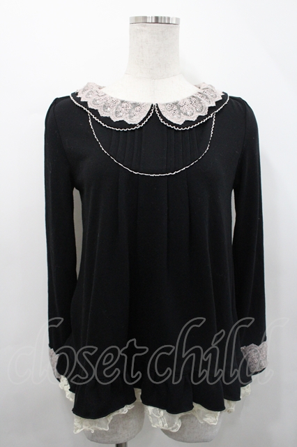axes femme / レース襟ヨーク切替プルオーバー M 黒 I-26-04-29-002-AX-TO-TE-ZI