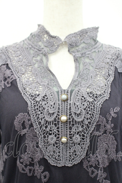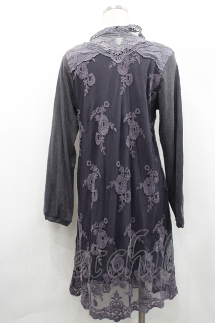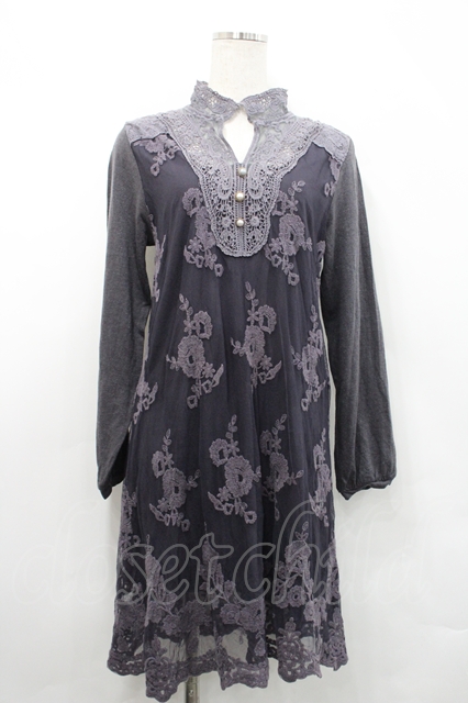 axes femme / 刺繍入りチュールチュニック M パープル×グレー I-26-04-29-020-AX-TO-TE-ZI