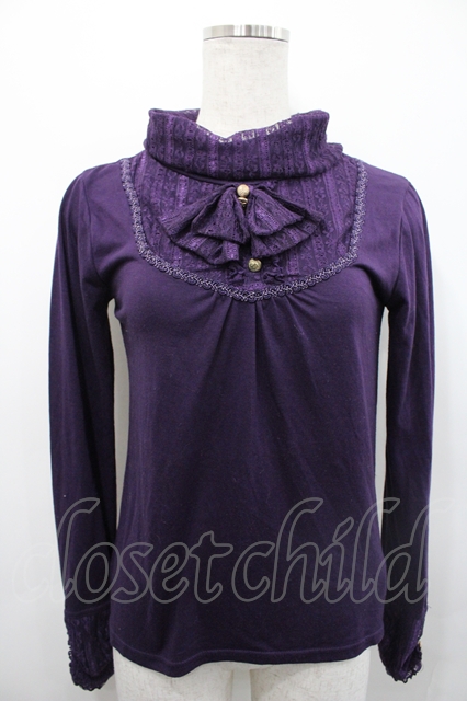 axes femme / レースヨークタートルネックカットソー M パープル I-26-04-29-011-AX-TO-TE-ZI