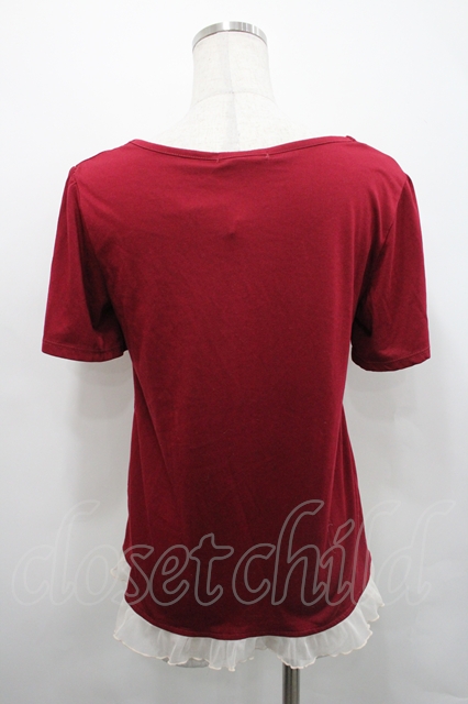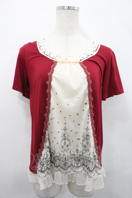 axes femme / プリントチュール切替トップス M 赤 I-26-04-29-018-AX-BL-TE-ZI
