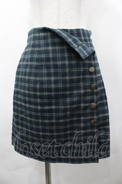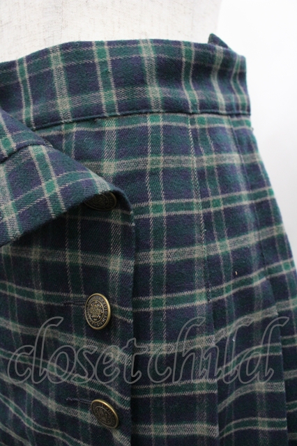 Fi.n.t / エンブレム釦サイドプリーツスカパン グリーンチェック I-26-04-29-094-CA-PA-SA-ZI
