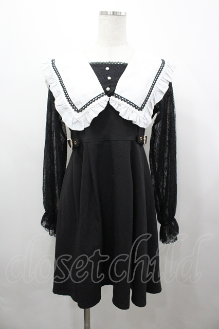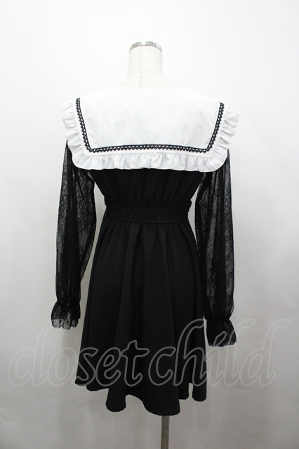 Rojita / 袖レース切り替えセーラー襟ワンピース 黒X白 I-26-04-29-064-LO-OP-SA-ZI