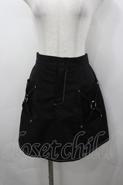 Jamie エーエヌケー / メッシュポケットスカート 黒X白 I-26-04-29-087-LO-SK-SA-ZI