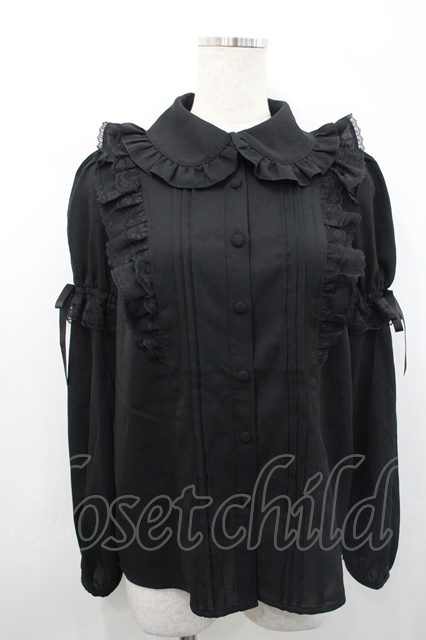 Secret Honey / レースフリル長袖ブラウス 黒 I-26-04-29-027-CA-BL-SA-ZI