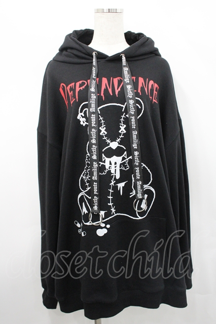 Amilige / テディベアプリントパーカー 黒x白 I-26-04-29-048-PU-TO-SA-ZI