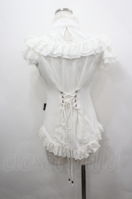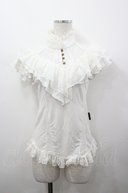 Ozz oneste / レースフリルハイネック半袖トップス 白 I-26-04-29-051-OO-BL-SA-ZI