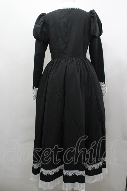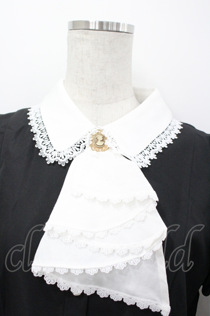 十二月暖暖 / カメオブローチジャボ長袖ワンピース L 黒X白 I-26-04-29-060-LO-OP-SA-ZI