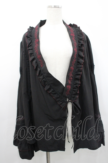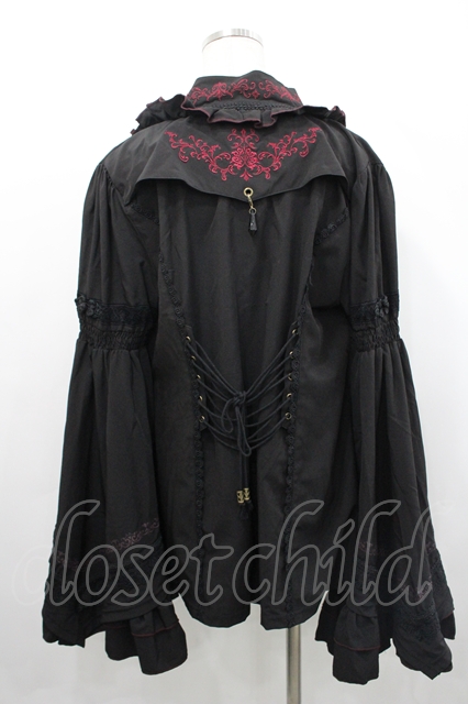 Ozz oneste / フロント刺繍&袖先段フリルジャケット 黒X赤 I-26-04-29-049-OO-JA-SA-ZI