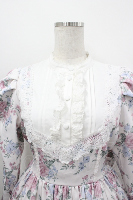 Chalmiere / クラシカルローズ柄ワンピース M オフ I-26-04-29-074-AX-OP-TE-ZI