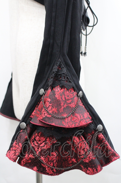 Ozz oneste / 露縁ブラウス 黒X赤 I-26-04-29-050-OO-BL-SA-ZI
