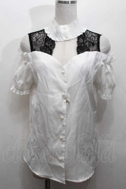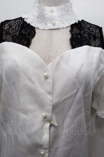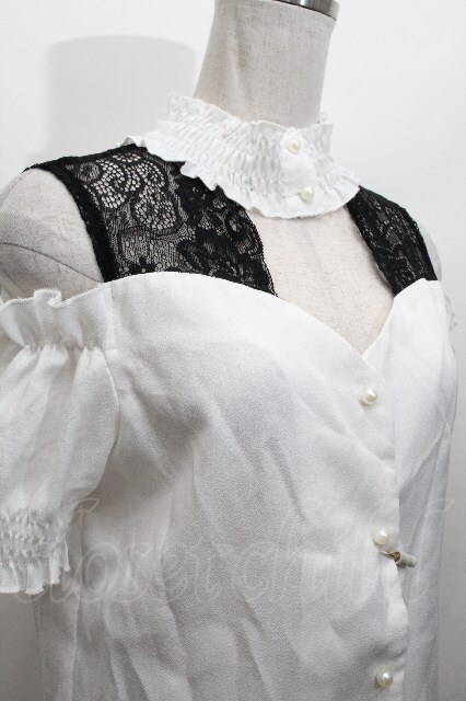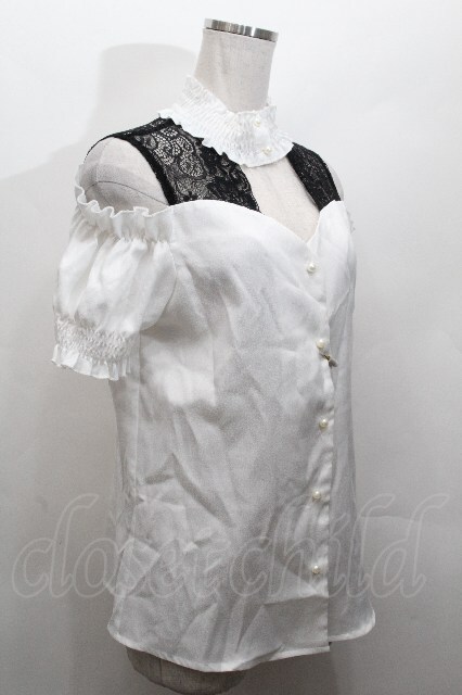 MA*RS / レース切替半袖ブラウス 白x黒 S-26-04-30-011-EL-BL-HR-ZS