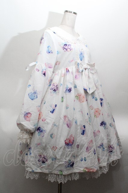 inori / ジュエルプリントワンピース M 白 S-26-04-30-020-LO-OP-HR-ZS