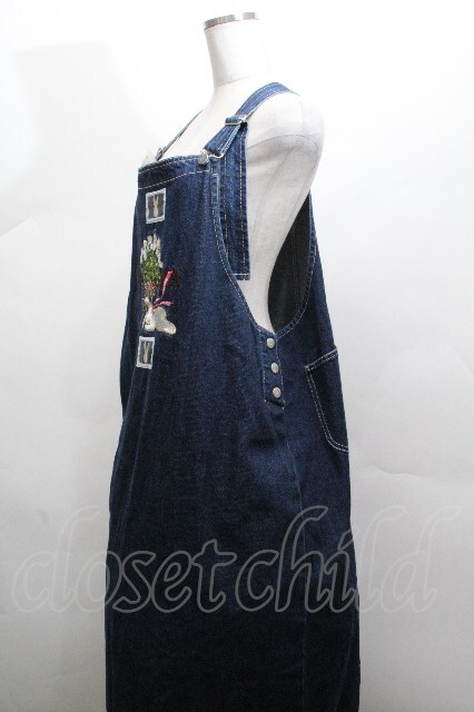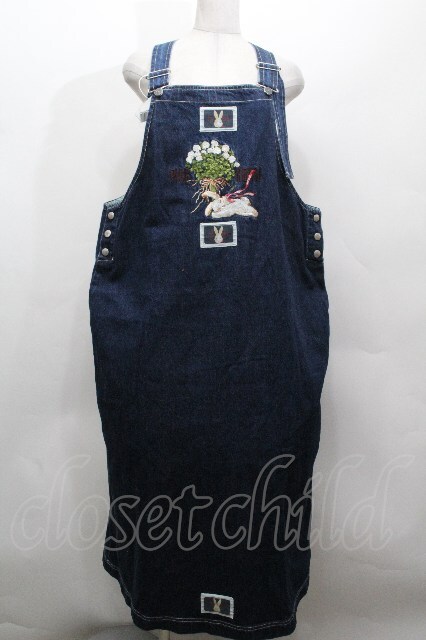 PINK HOUSE / White Cloverリース&sleeping rabbit刺繍デニムジャンパースカート 青 S-26-04-30-039-LO-OP-AS-ZS