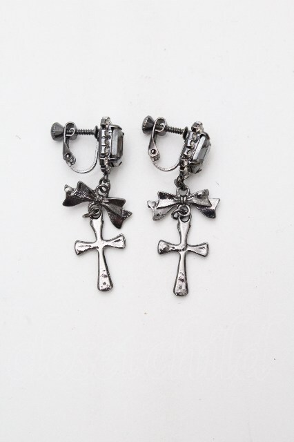 LOLITA / クロスXリボンイヤリング 黒 S-26-04-30-1006-LO-AC-HR-ZS