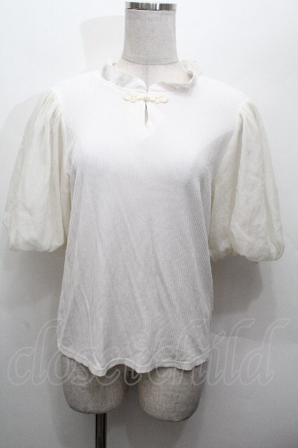 Amavel / チャイナ半袖トップス 白 S-26-04-30-1015-CA-TO-AS-ZS