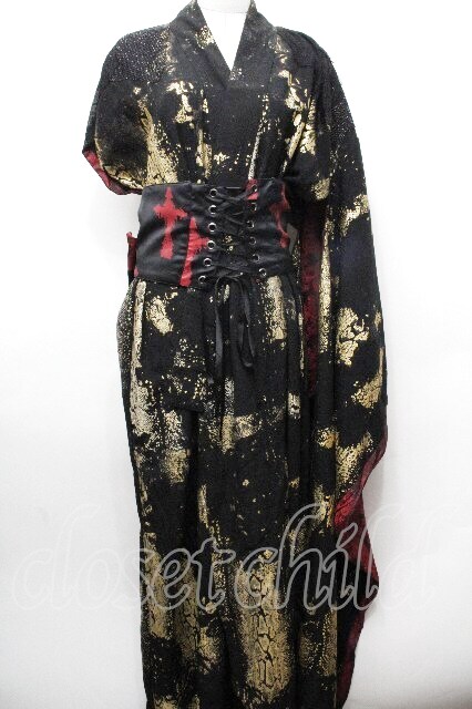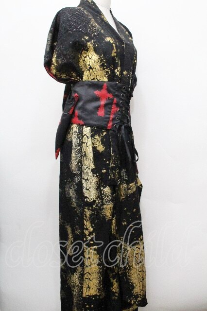 VII / パイソン柄浴衣 + 帯セット 黒 S-26-04-30-1019-HN-TS-HR-ZS